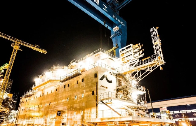 走向深遠(yuǎn)海 亞洲首制海上風(fēng)電運(yùn)維母船下水