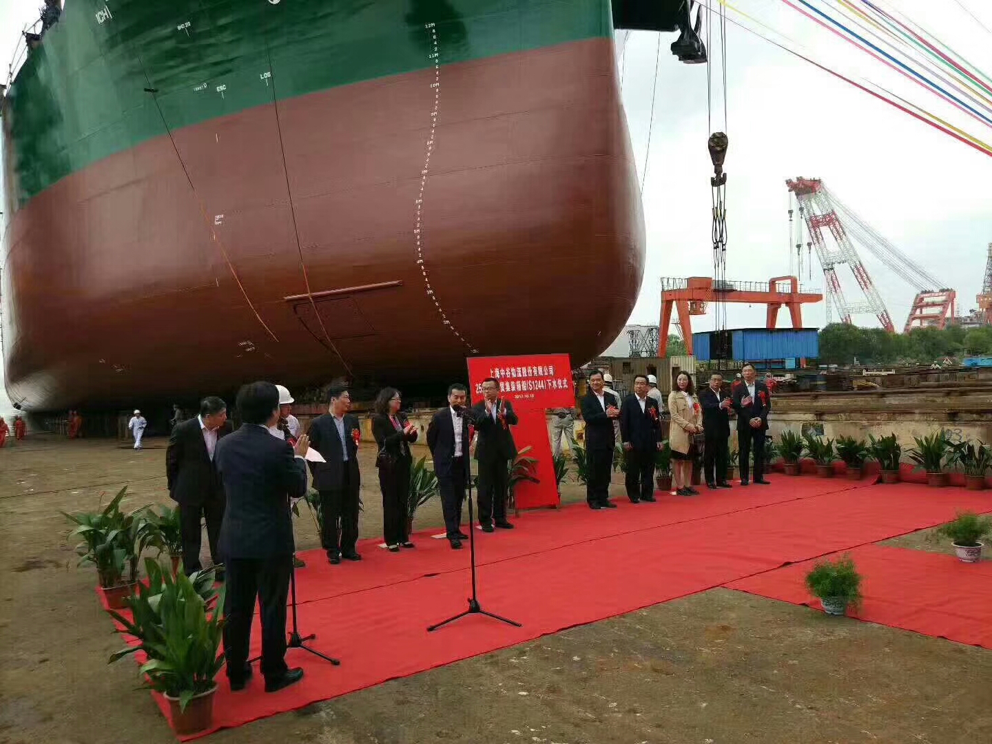 喜迎十九大!獻(xiàn)禮十九大!同時(shí)熱烈祝賀南通豪通船務(wù)(上海事業(yè)部)在上海船廠承接搭載工程的2500TEU內(nèi)貿(mào)集裝箱船,于2017年10月18日上午11:28分順利下水! 文/攝:顧強(qiáng)