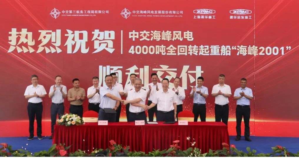 7月25日,由中交海峰風(fēng)電投資、振華重工建造的“施工+運(yùn)輸”一體化4000噸全回轉(zhuǎn)起重船“海峰2001”項(xiàng)目交船儀式在振華啟東海工隆重舉行,我國海上風(fēng)電領(lǐng)域再添利器。江蘇啟東副市長黃晨,中交集團(tuán)供應(yīng)鏈管理部總經(jīng)理助理黃毅,中交三航局黨委副書記、總經(jīng)理龔海,中交海峰風(fēng)電黨委書記、董事長季振祥,振華重工黨委副書記、總裁歐輝生出席儀式。